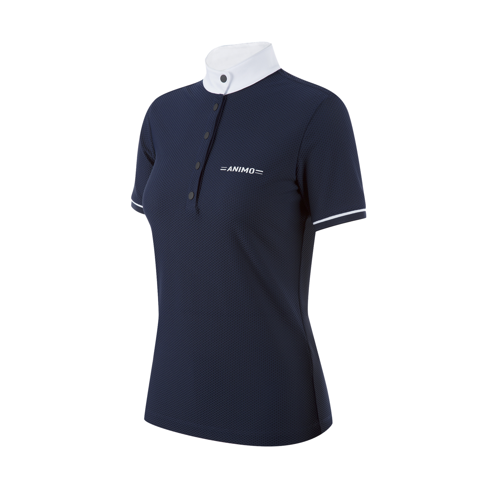 Women’s short-sleeved riding polo made from the new Rete Star material. The material is an ultra-light mesh material and is ideal for summer thanks to its airy, quick-drying, and bi-elastic properties. The polo captivates with its simple design, with 5 functional buttons and the thermo-taped ANIMO lettering on the left side.