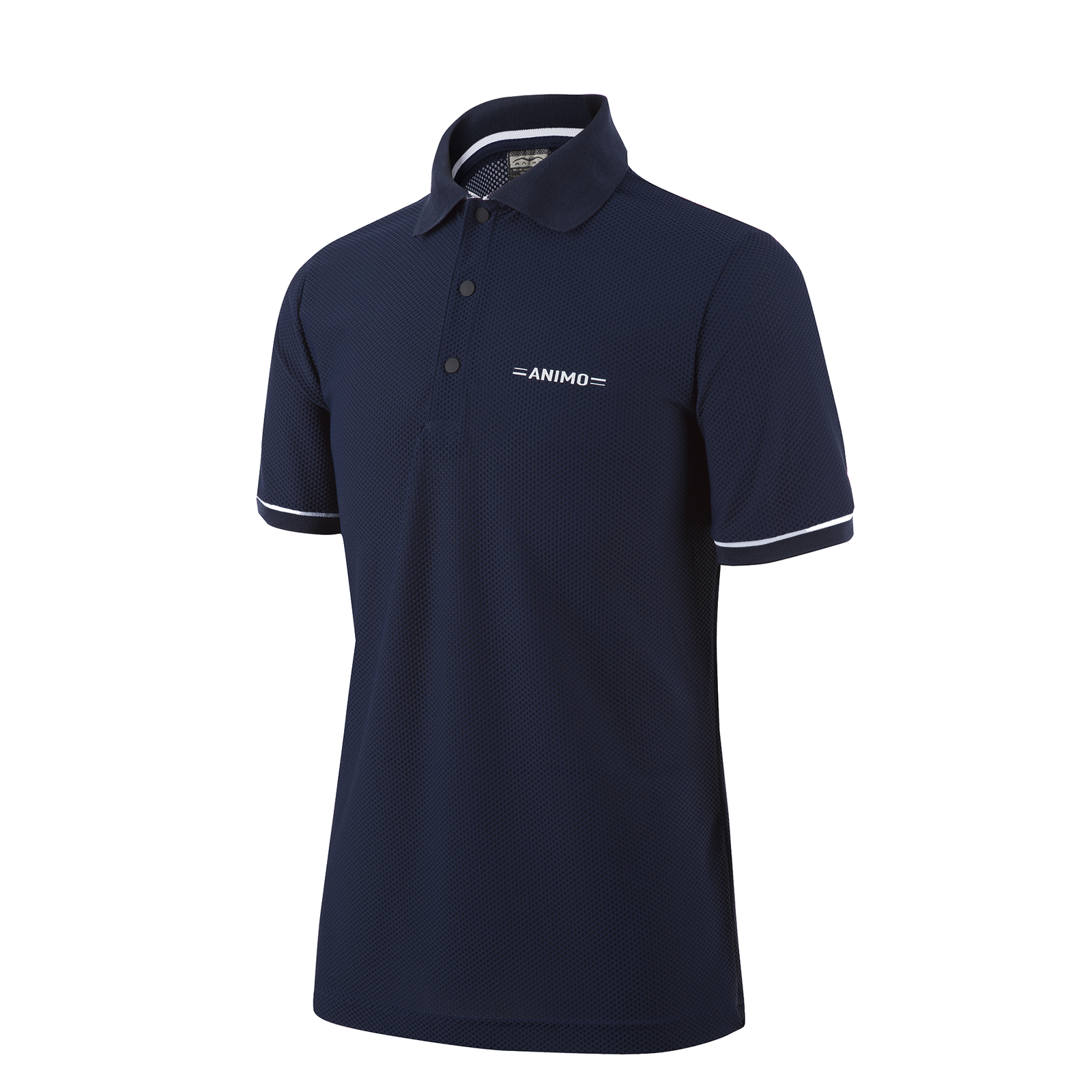 Man short-sleeves training polo made from the new Rete Star material. The material is an ultra-light mesh material and is ideal for summer thanks to its airy, quick-drying and bi-elastic properties. The polo captivates with its simple design, with 3 functional buttons and the thermo-taped ANIMO lettering on the left side.