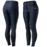 The B Vertigo Patricia thermo breeches combine all functions that you need for comfortable riding: Thermo material keeps you warm while also being breathable, water repellent and quick-drying. 4-way stretch makes them super comfortable. UV protection is effective on sunny winter days. Shiny piping along pockets and belt loops adds definition.
