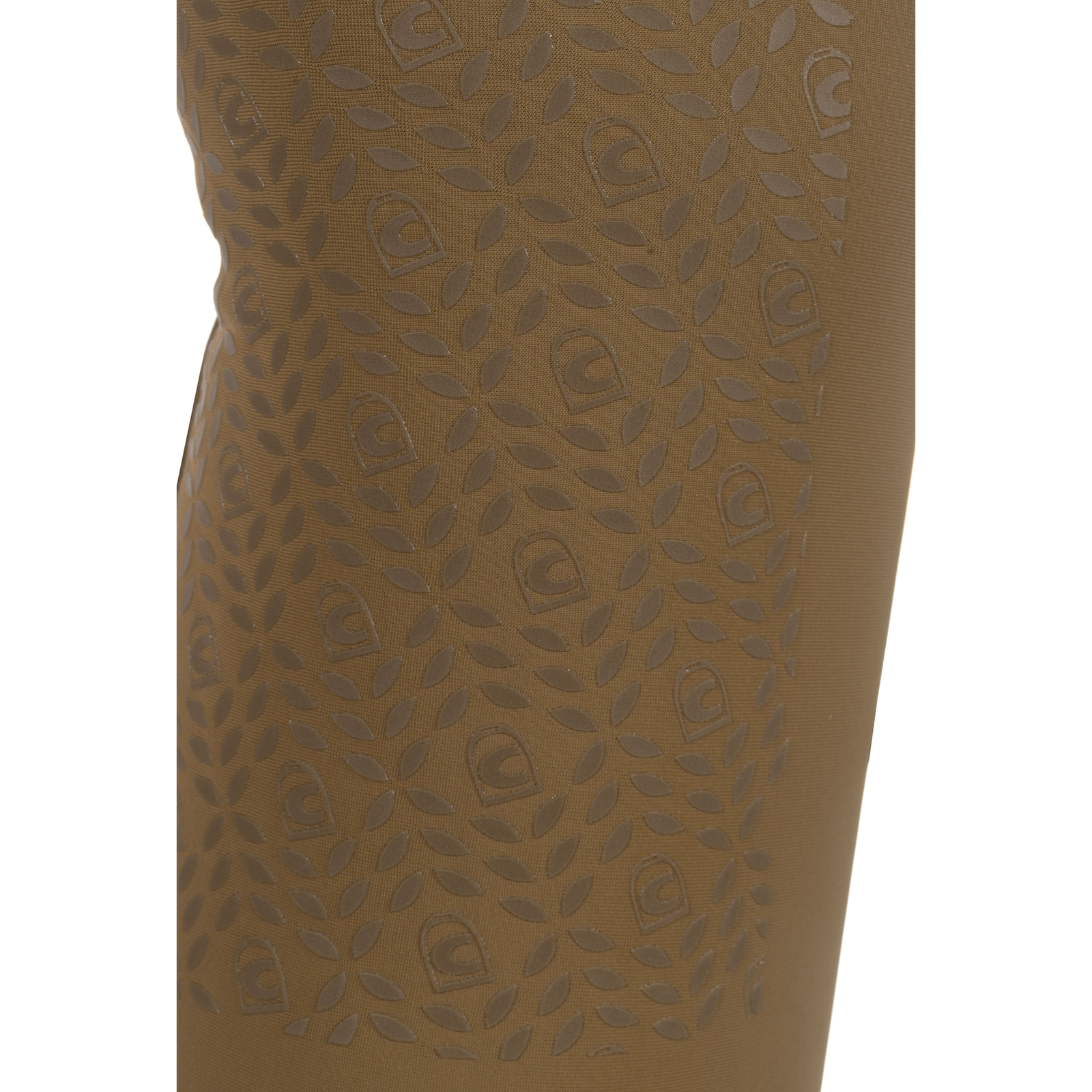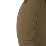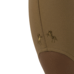 Elegant breeches made from a comfortable functional fabric. Closable seam pockets. Mobile phone pocket on the right thigh, can be closed with a zipper. High-quality heraldic logo embroidery on the side leg, decorated with gold-colored crystal stones. Two tonal horse embroideries at the hem. Elegant, tonal prints on the side leg and on the back yoke. Gold-colored details and highlights. Elastic leg cuffs, perfectly color-coordinated.