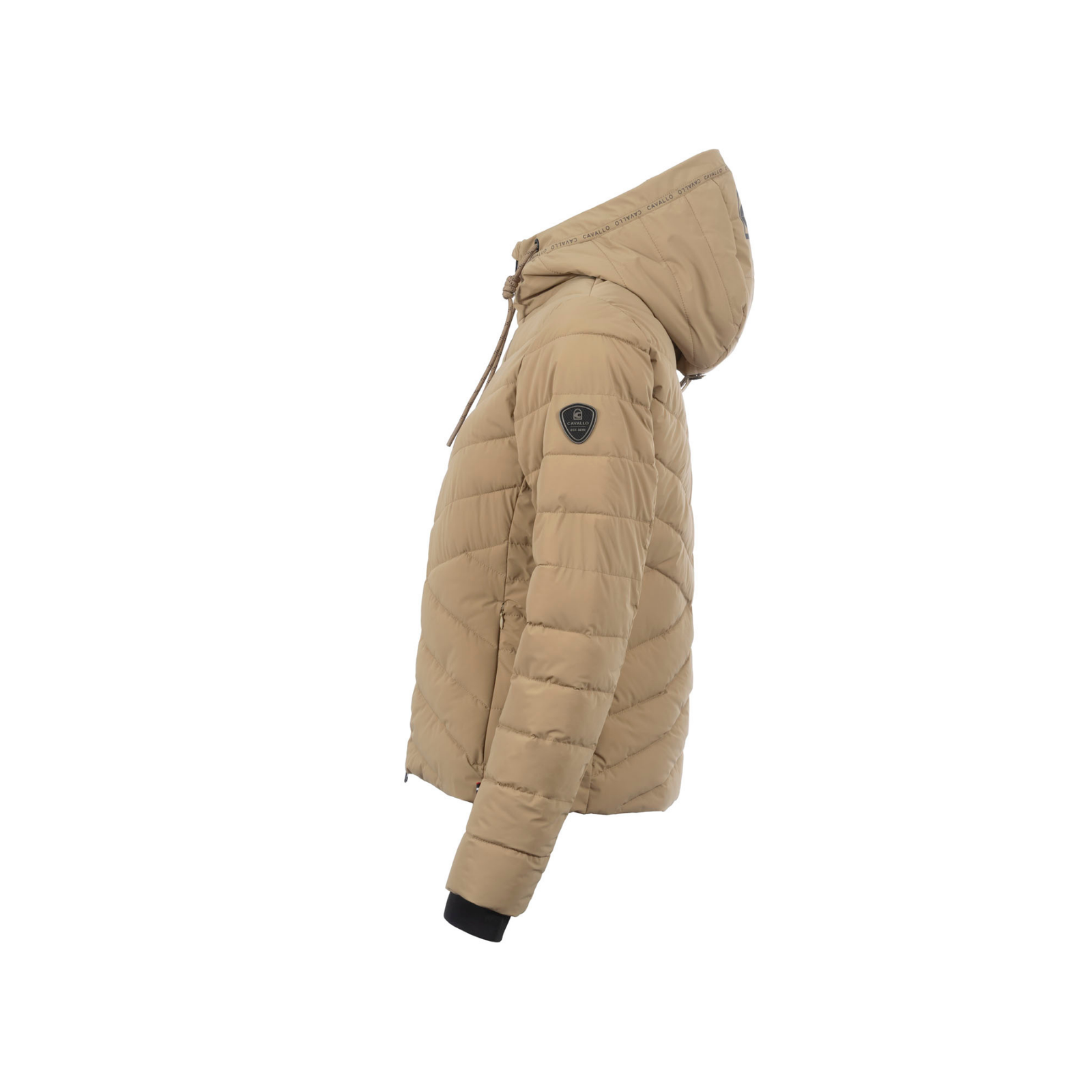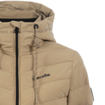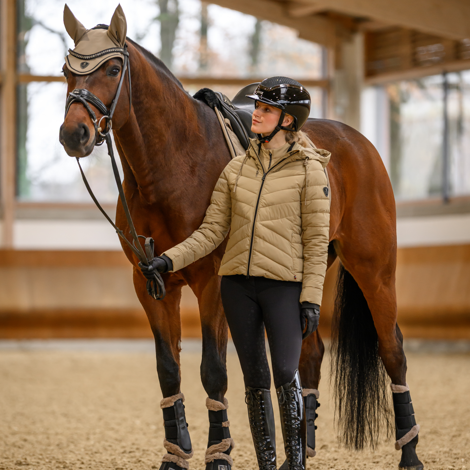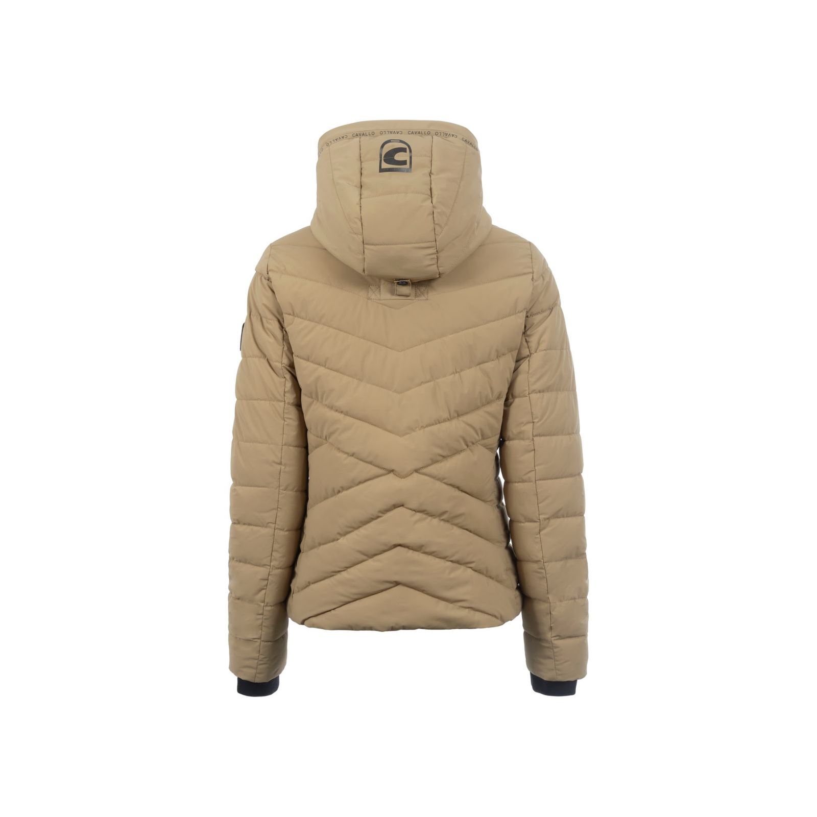 The Cavallo CavalRaven Ladies Winter Coat in Hazel features a short, fitted silhouette with sophisticated quilting—appealing patterns on front and back, and horizontal quilting on sleeves and sides.