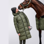 Concealed zip pockets, sleeve cuffs made of functional jersey, and a long center-back zip for riding flexibility enhance usability. A practical mobile phone pocket completes this versatile winter coat.