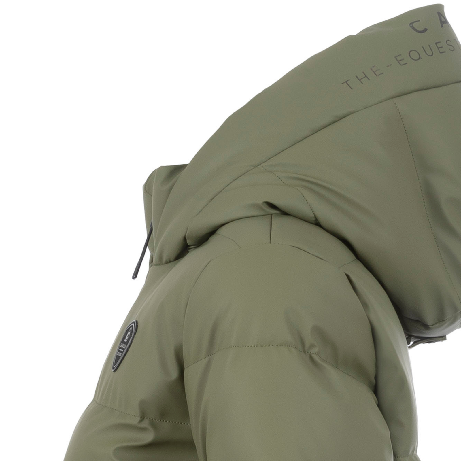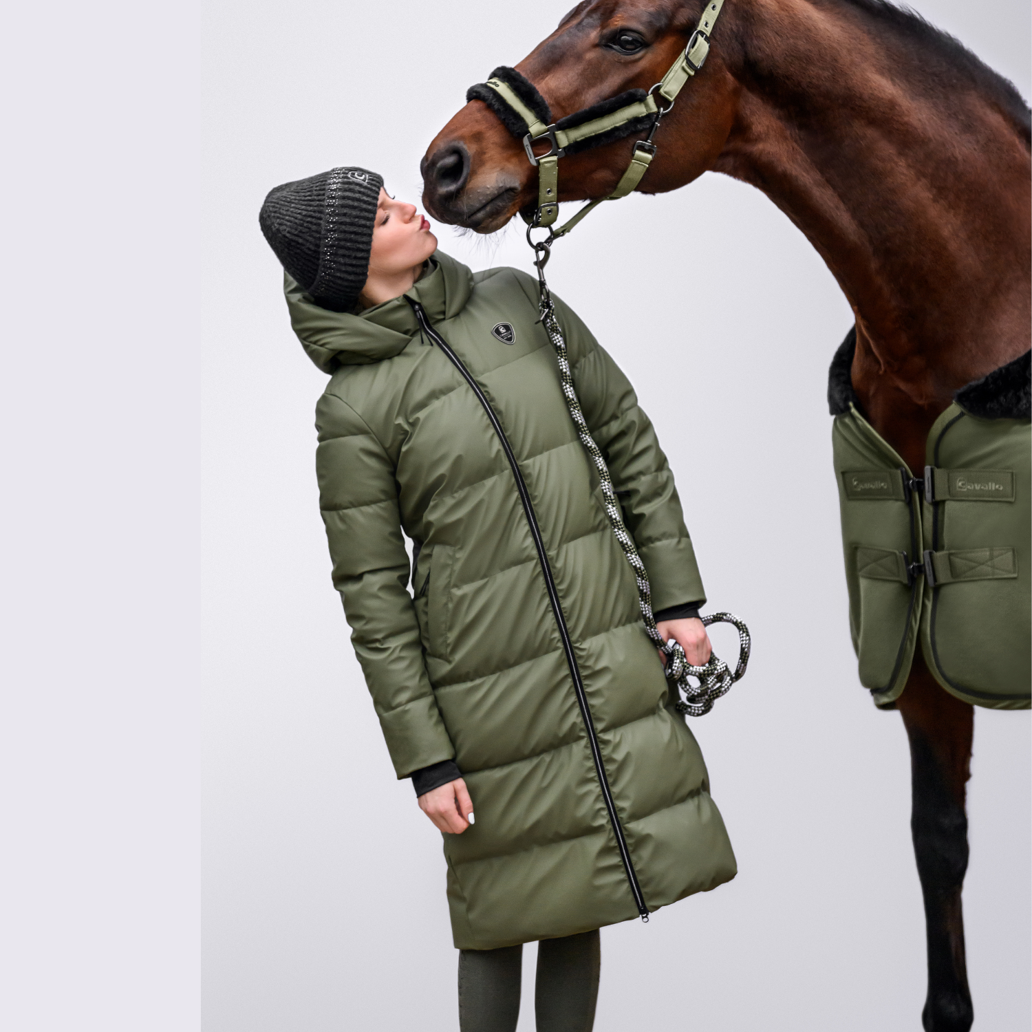 The oversized hood includes a black drawstring and press stud fastening, accented by a Cavallo contrast print. A black ribbed collar ensures comfort, while the black two-way front zipper features a sleek silver-look metal strip and Cavallo pendants.