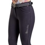Sporty breeches based on successful model CALIMA GRIP. Breeches have all the advantages of the CALIMA GRIP. Two slit pockets and a coin pocket with a zipper at the front. Flaps with crystals at the back. Knee silicone grip.