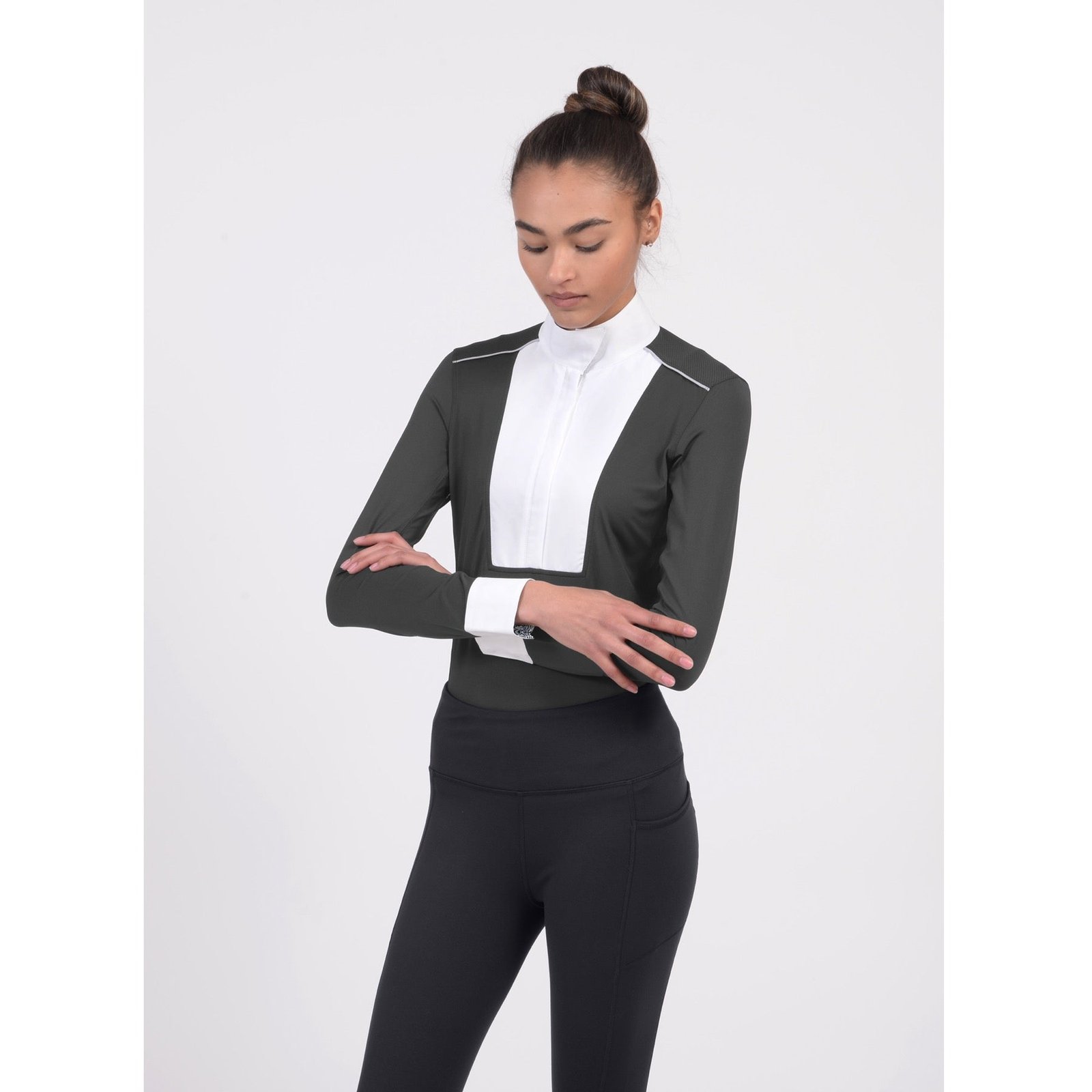 You asked for a SkyCool® Show Shirt and this shirt delivers. Made of the lightest weight fabrics to give you the lightest weight sun shirt ever. Feel the cooling comfort in warm, humid weather conditions by converting sweat into cooling energy so you stay dry and comfortable. SkyCool® fabric is infused fiber technology for cooling, moisture absorption, fast drying, 2-way air circulation and 50+ UV protection. 4-way stretch flat weave fabric offers more stretch and superior comfort. Classic white poplin bib, collar and cuffs lined with unique Liberty® London prints, mesh shoulders, sides and underside sleeve inserts add additional cooling airflow. Pull-over style shirt features a hidden low profile YKK zipper placket and no-show collar and cuff snaps for a polished show look, stock tie loop, shirttail hem and a tailored show fit.