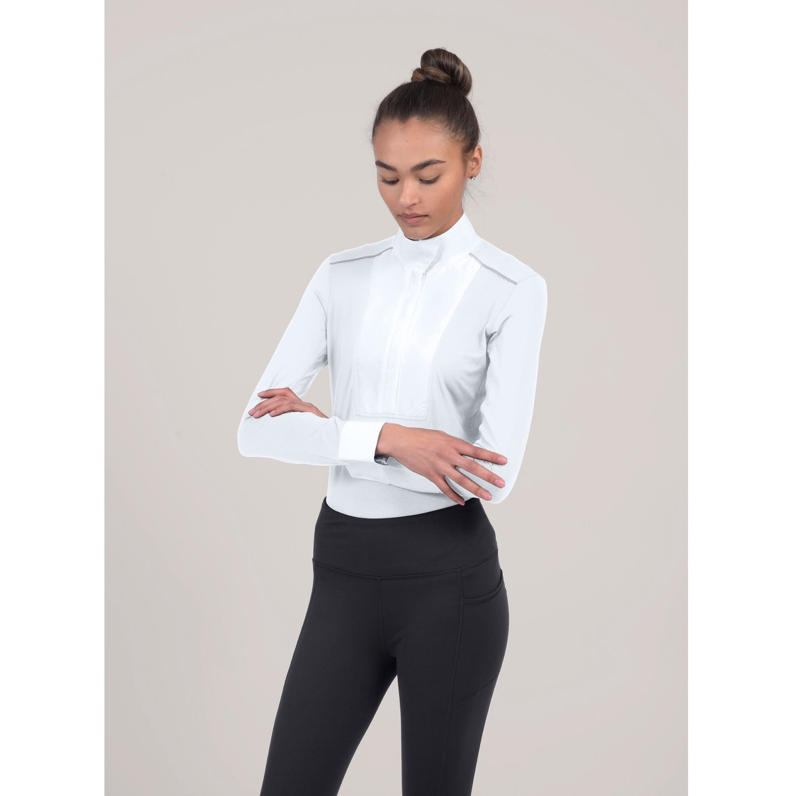 You asked for a SkyCool® Show Shirt and this shirt delivers. Made of the lightest weight fabrics to give you the lightest weight sun shirt ever. Feel the cooling comfort in warm, humid weather conditions by converting sweat into cooling energy so you stay dry and comfortable. SkyCool® fabric is infused fiber technology for cooling, moisture absorption, fast drying, 2-way air circulation and 50+ UV protection. 4-way stretch flat weave fabric offers more stretch and superior comfort. Classic white poplin bib, collar and cuffs lined with unique Liberty® London prints, mesh shoulders, sides and underside sleeve inserts add additional cooling airflow. Pull-over style shirt features a hidden low profile YKK zipper placket and no-show collar and cuff snaps for a polished show look, stock tie loop, shirttail hem and a tailored show fit.