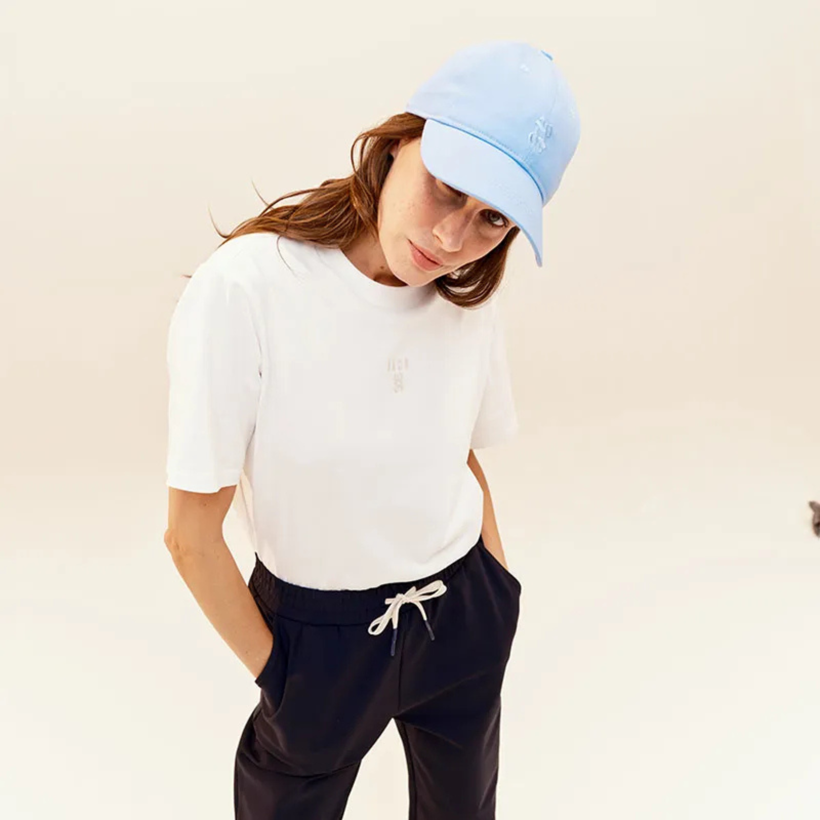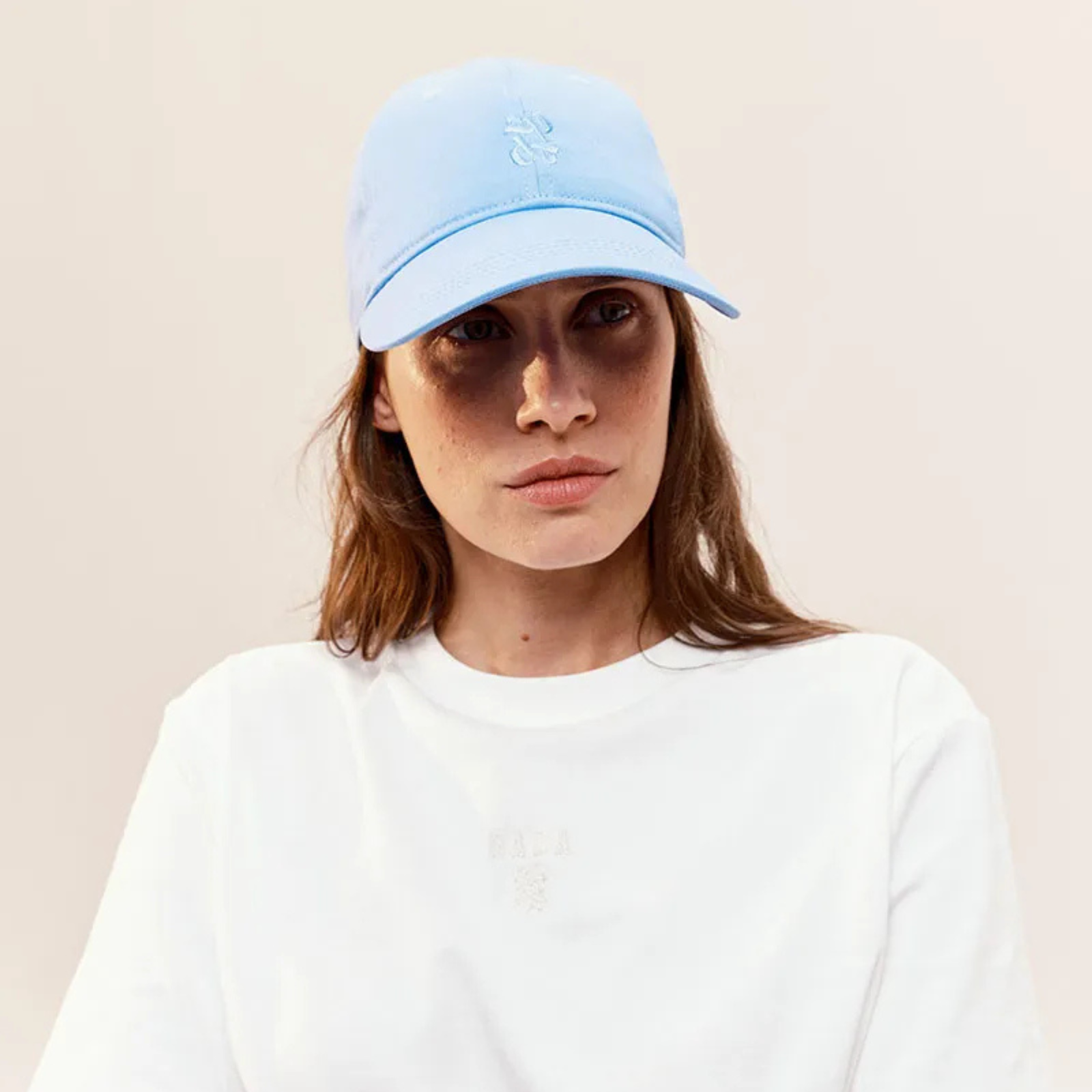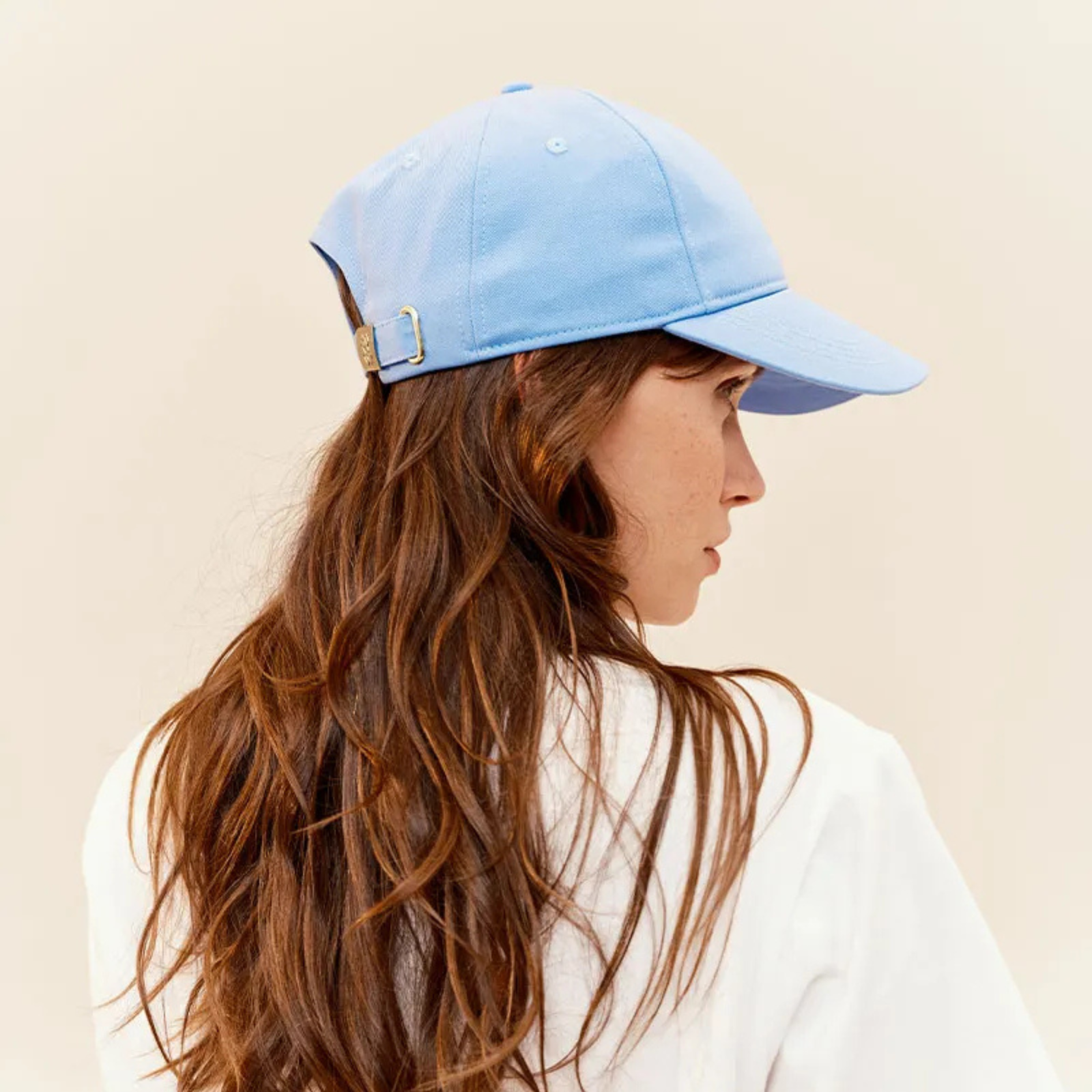 Unisex baseball cap. DA monogram logo embroidered in a tone-on-tone monogram on the front. DADA-engraved gold-tone metal adjustment buckle. Lightweight cotton, comfortable to wear all day. UPF 50+ certified sun protection.