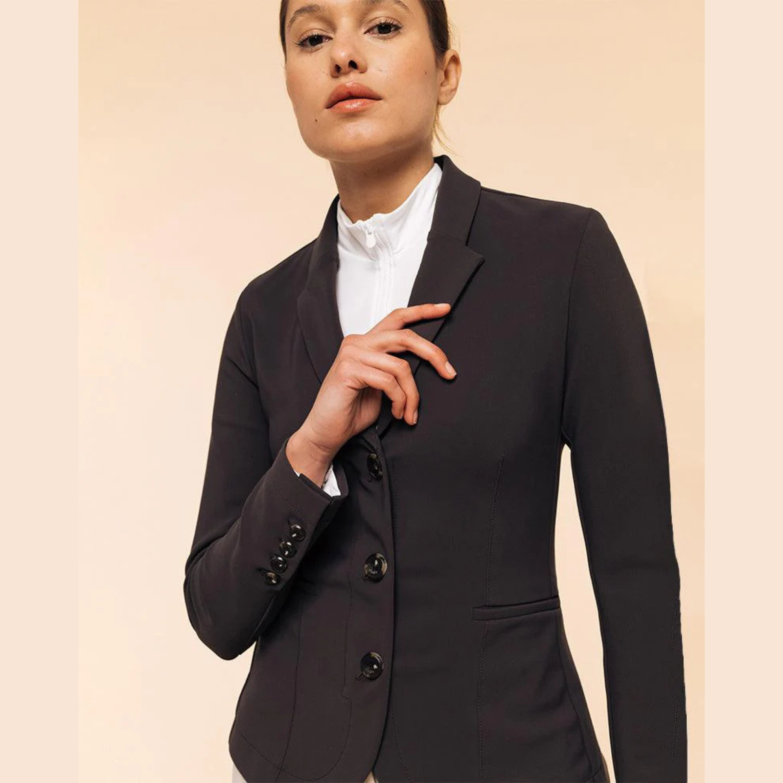 This competition jacket has been imagined in a tailor spirit with a refined, elegant and timeless design. It is compatible with the airbag vest Concorde by Dada Sport and Zip’in 2 from Helite.The color palette