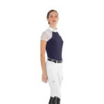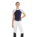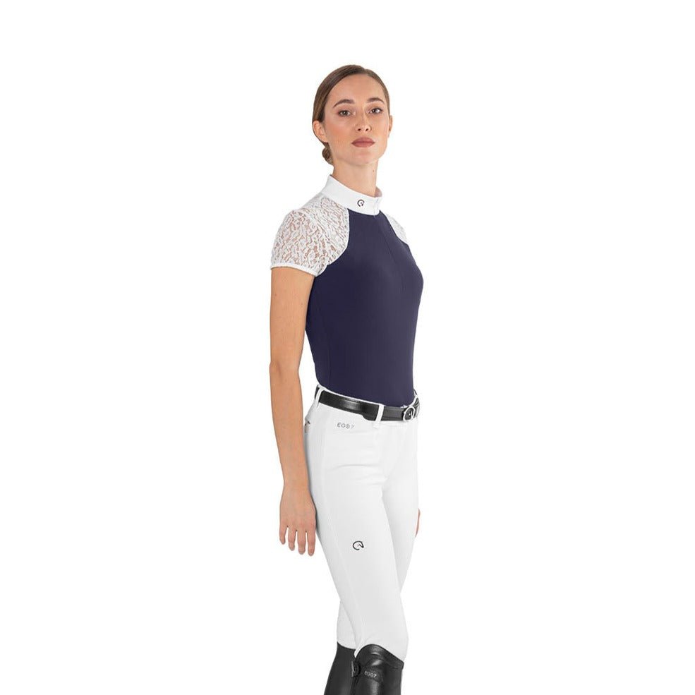 Ladies Short Sleeve Show Shirt Florentine – jaw dropping elegance combines with high tech performance to bring you this incredibly luxurious ladies short sleeve competition shirt from Italian brand Ego7. The high tech, quick drying and highly breathable main fabric is complimented to perfection with beautiful lace detailing on the arms to give the shirt a dignified look. The anti-wrinkle fabric ensures it is easy care when away competing. The final touches of a crisp white collar and sleeve ends add definition to the shirt to give it a professional look without taking away from it’s exquisite looks.Â