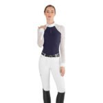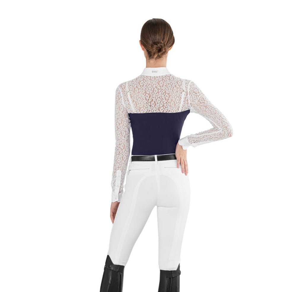 Ladies Long Sleeve Show Shirt Florentine – jaw dropping elegance combines with high tech performance to bring you this incredibly luxurious ladies long sleeve competition shirt from Italian brand Ego7. The high tech, quick drying and highly breathable main fabric is complimented to perfection with beautiful lace detailing on the arms to give the shirt a dignified look. The anti-wrinkle fabric ensures it is easy care when away competing. The final touches of a crisp white collar and sleeve ends add definition to the shirt to give it a professional look without taking away from it’s exquisite looks.Â
