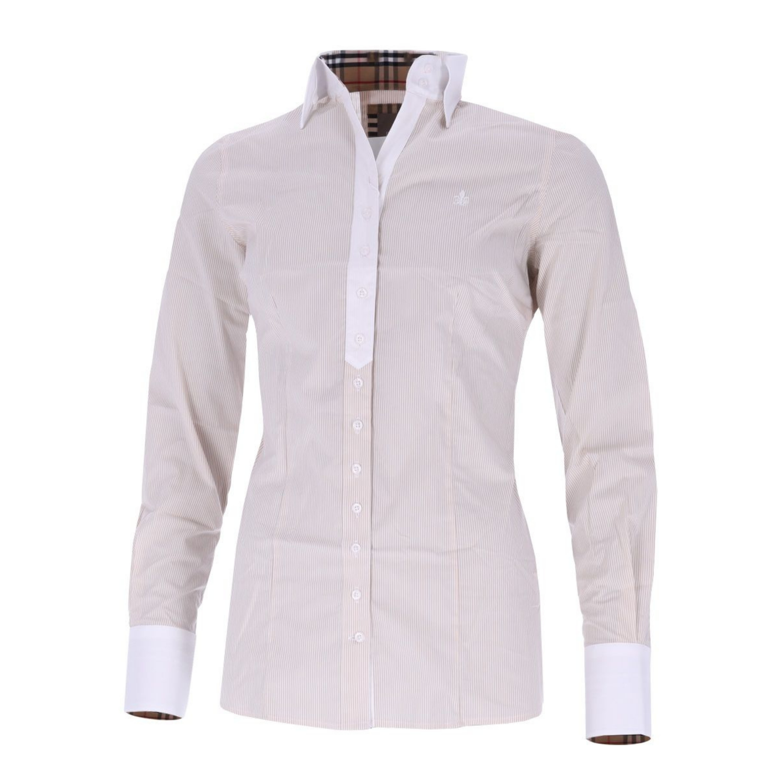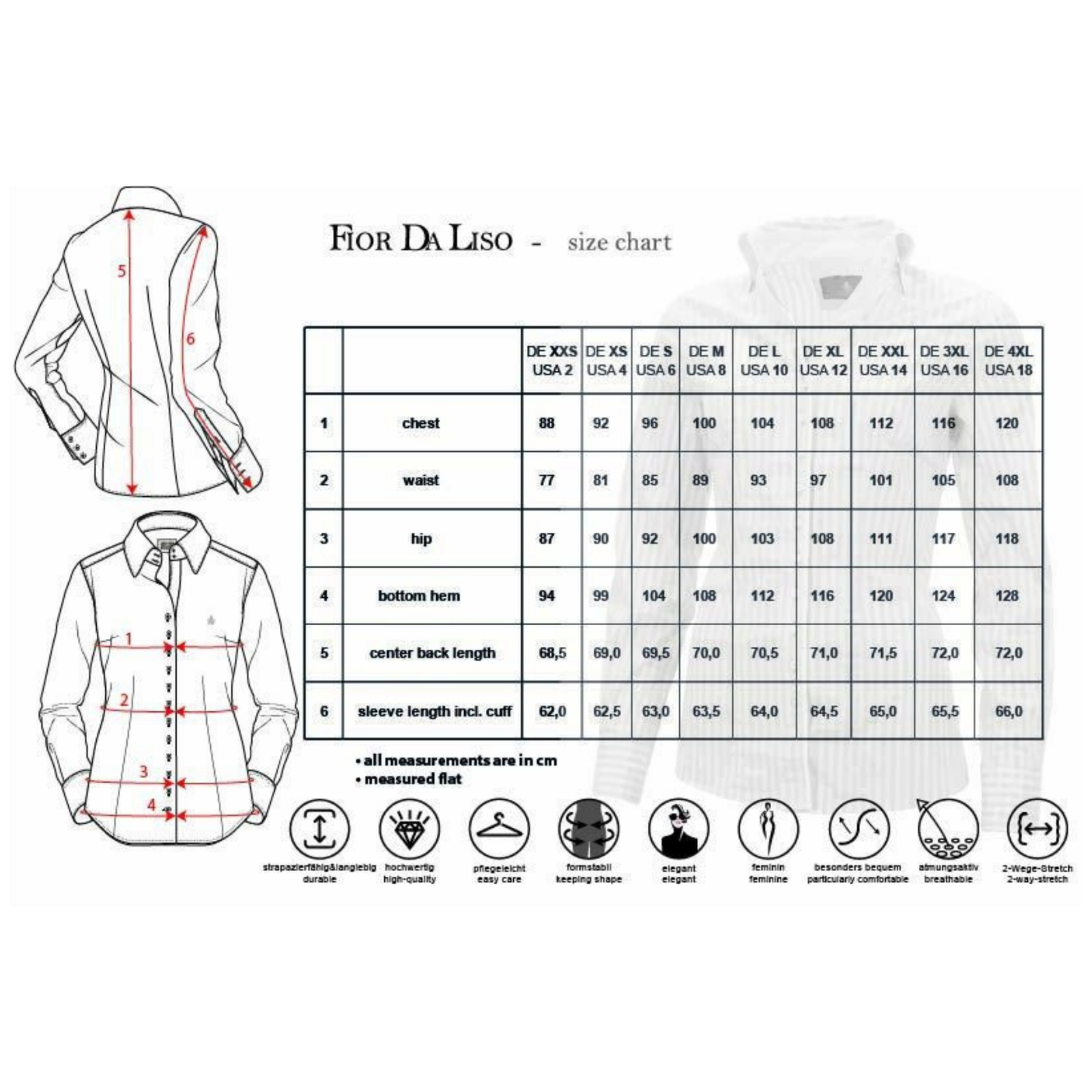 The Fior Da Liso “Carina London B.” blouse combines classic chic with functional elegance. The light collar adds a sophisticated touch and harmonizes beautifully with the classic striped pattern. The divided button placket gives the blouse a distinctive look, while the checked fabric on the inside collar and cuffs provides a charming contrast.