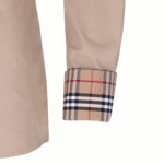 The stylish “Sally London B.” blouse impresses with a classic, timeless beige tone that combines elegance and versatility. The double collar and cuffs add sophisticated accents, while white details, such as fine piping on the front and the white collar stand, create a sophisticated contrast. Checked elements in the collar and cuffs give the blouse a unique and stylish touch.