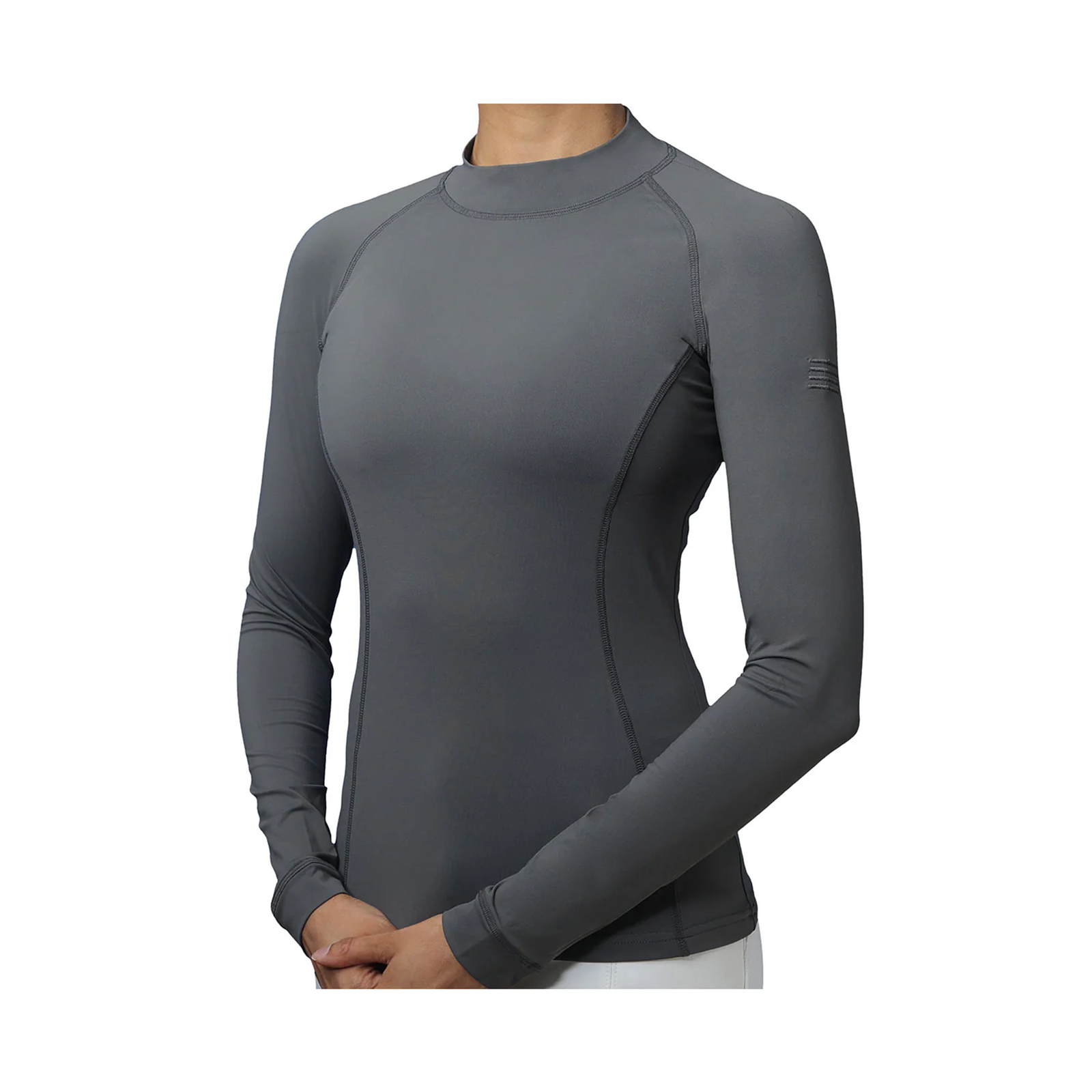 Our base layer shirts are made from Tactel® technical fabric that draws moisture away from your skin while protecting you from the sun. Our design features a sleek fit, flattering seaming, and an elegant embroidered logo on the sleeve.