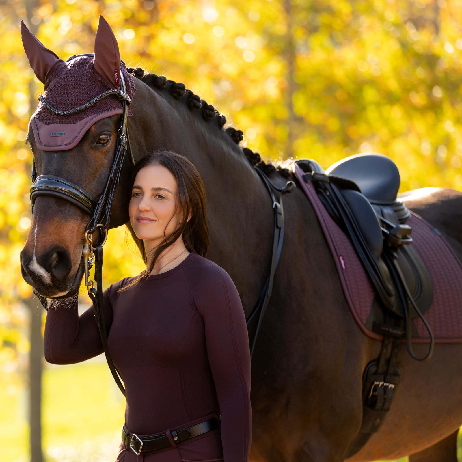 Stay cool in this lightweight, UV30+ breathable training top with a cooling treatment in the fabric.A flattering, body contouring shape, antimicrobial sweat-wicking fabric and long sleeves with thumb holes make this the ideal top for active wear.Subtle rubberized LeMieux badge branding on the arm lends a touch of subtle sophistication.
