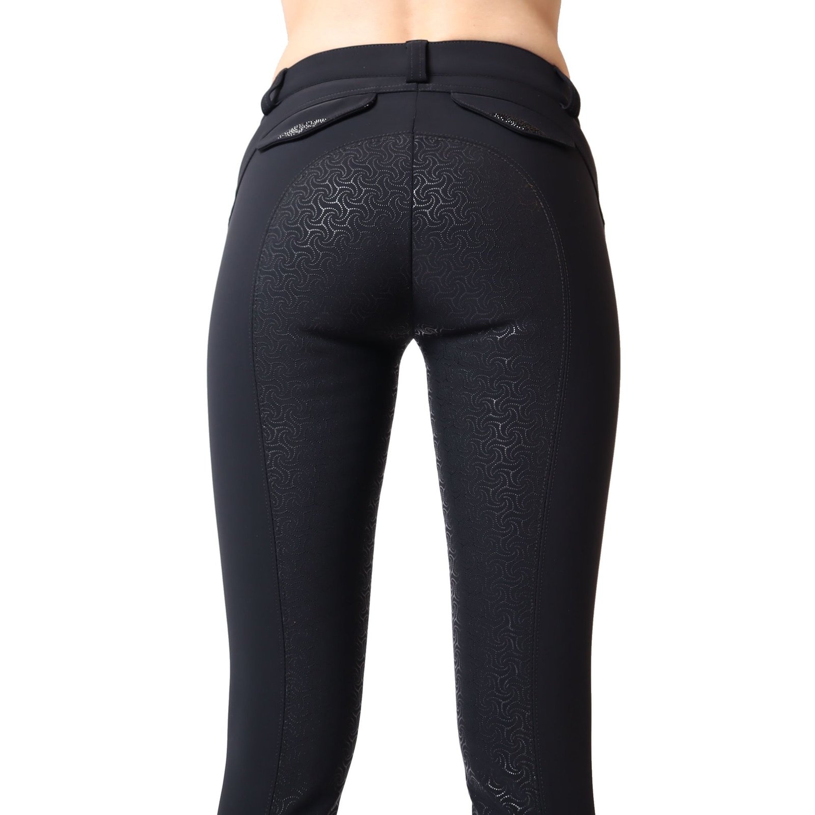 The tightly woven fabric is fast drying, breathable, and has a very soft hand feel. The UV filter 50+ makes the breeches perfect for summer outdoor adventures. Kyla breeches are equipped with two front pockets and two back pockets for decoration. The pockets are decorated with crystal details and the front pockets are a suitable size for cards and keys.