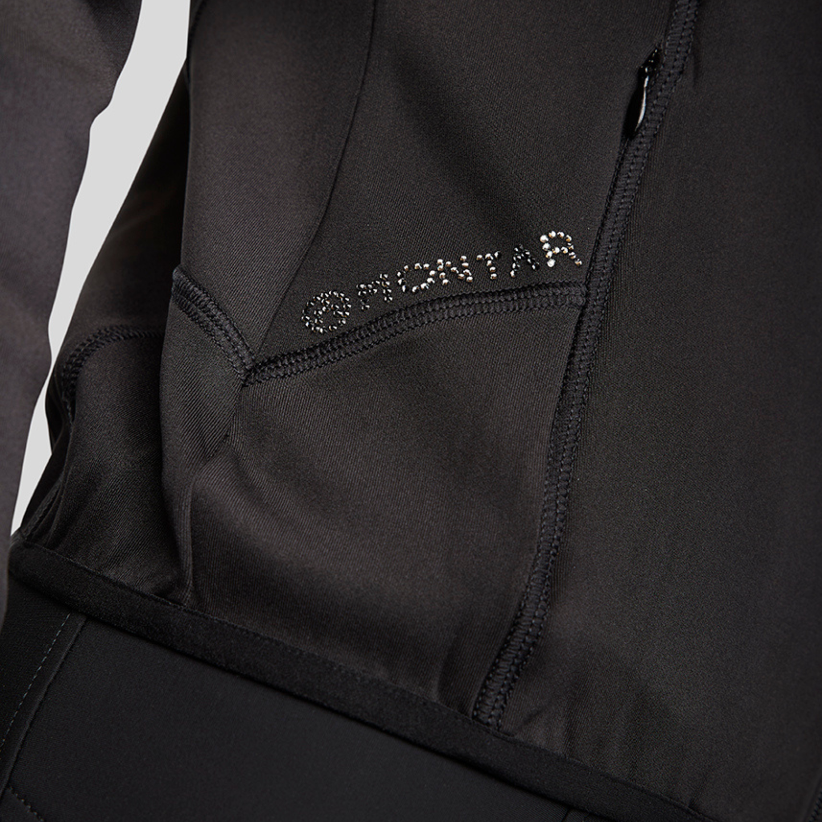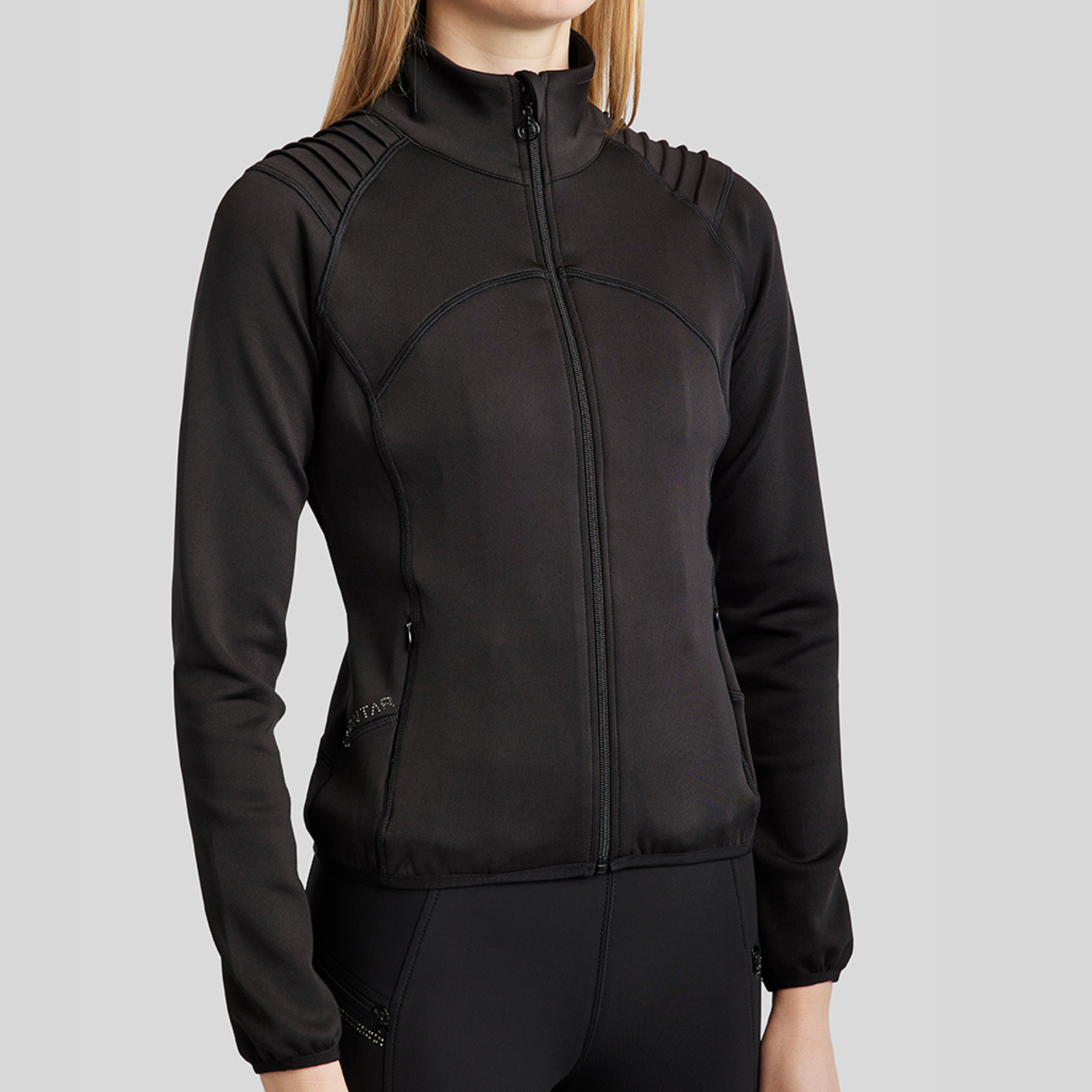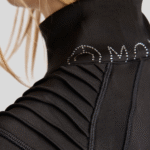 Designed for riders who seek both functionality and elegance, this full zip softshell jacket features pintuck detailing on the shoulders, creating a sleek, flattering, and sophisticated look. Sparkling crystals on the logo back of the collar add a touch of glamour, ensuring you shine both in and out of the saddle.