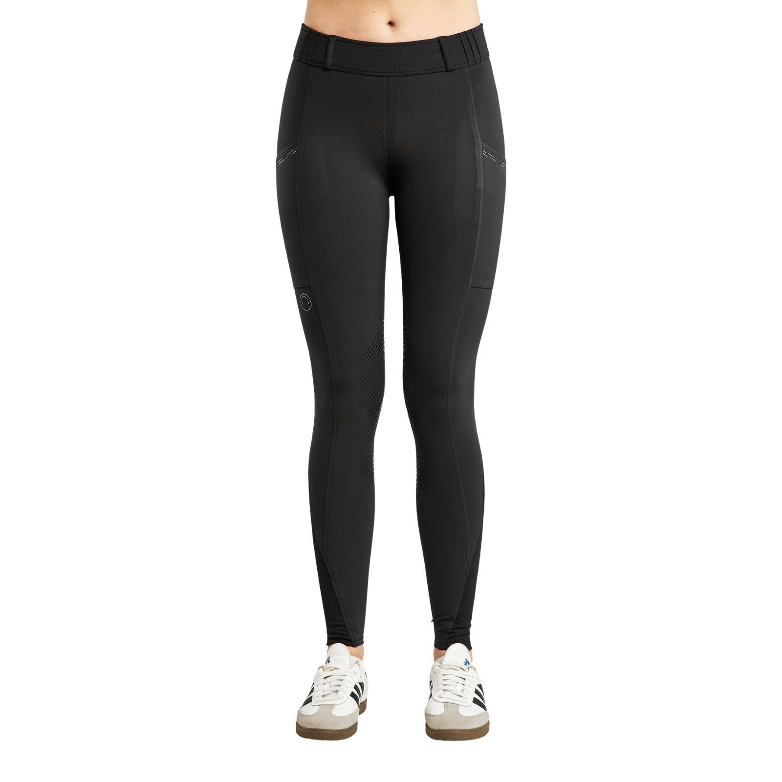 Designed for the modern equestrian, these tights feature a sleek black stretch fabric that delivers superior comfort, flexibility, and breathability—perfect for long days in the saddle or around the barn.