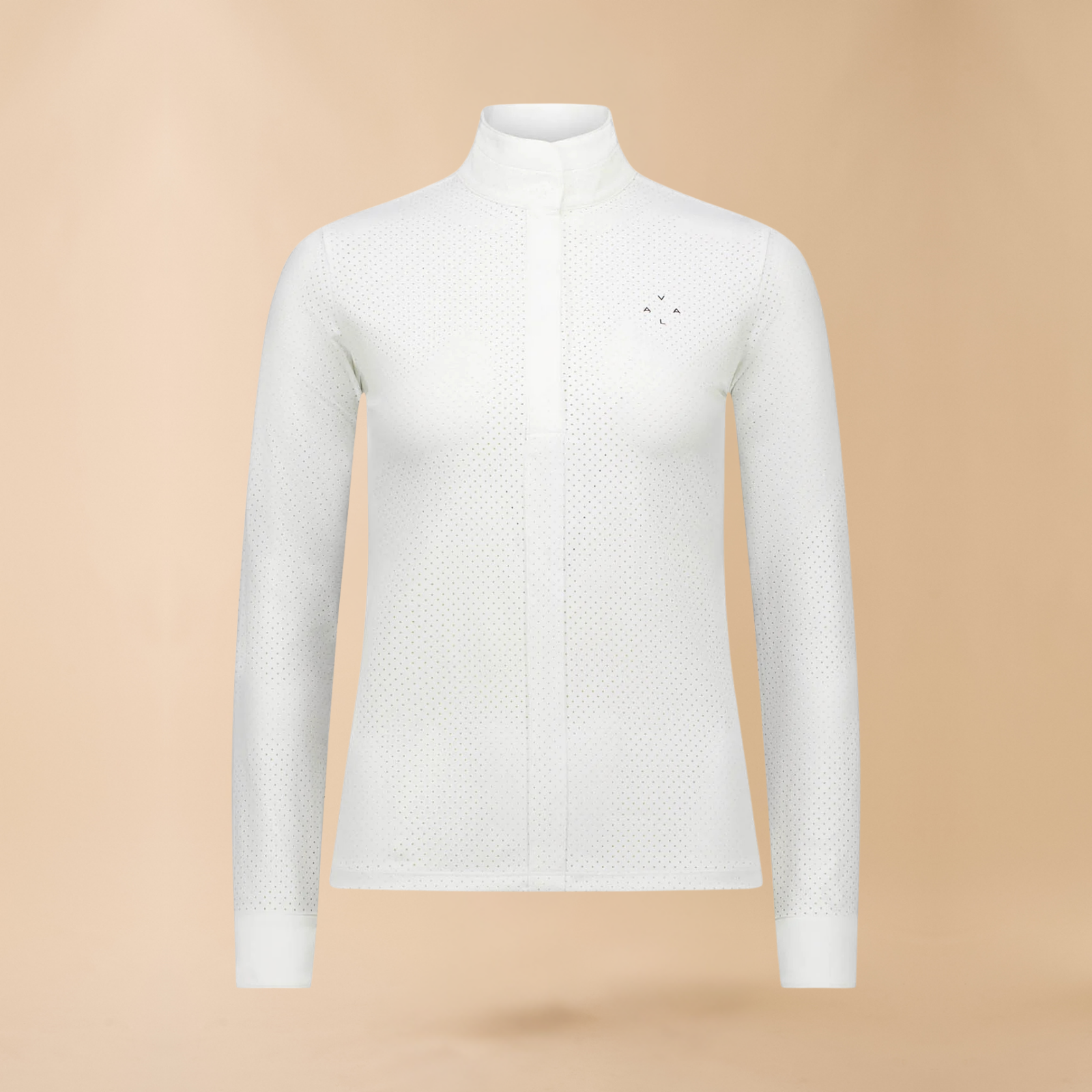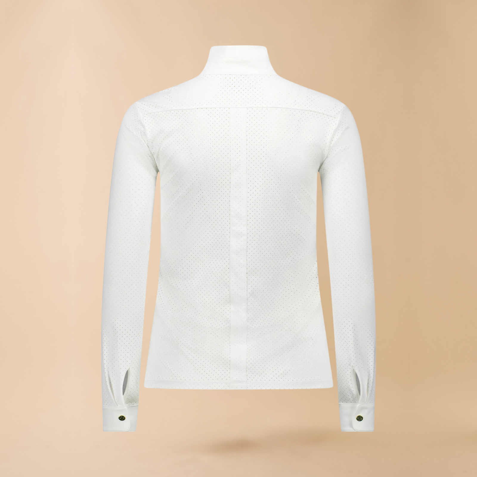 Experience unparalleled comfort and style with our Mesh Equestrian Show Shirt, designed for riders who demand both elegance and performance. Crafted in a classic white, this shirt features a clean, sophisticated design that’s perfect for any competition. The tailored fit flatters your silhouette while ensuring it doesn’t cling across the midsection, allowing for ease of movement and confidence in the ring. Made from butter-soft, lightweight, and breathable mesh fabric, this shirt keeps you cool under pressure, so you can focus on your ride. Whether you’re competing or simply enjoying a day at the barn, our show shirt combines timeless style with modern comfort, making it an essential addition to your equestrian wardrobe.