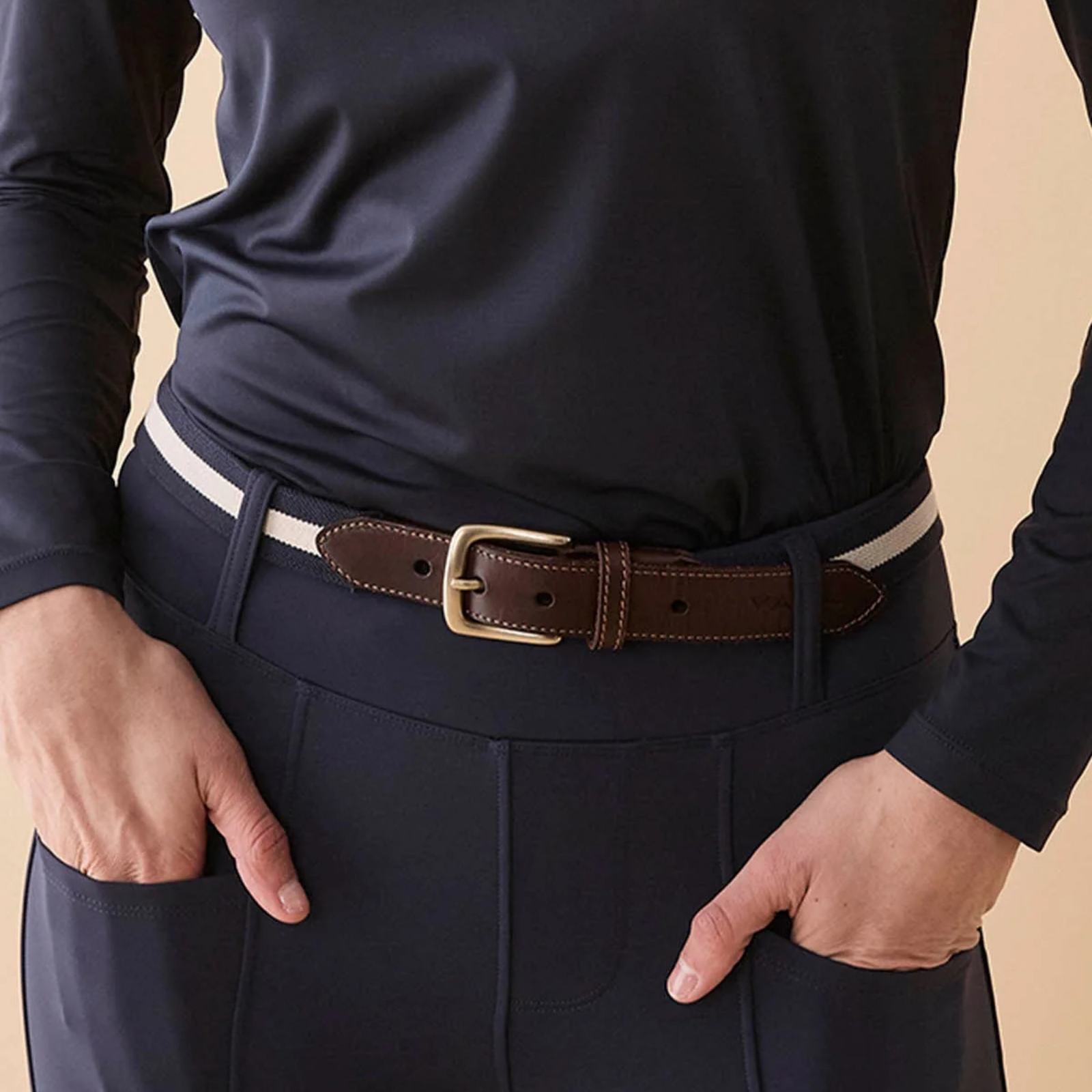 The ultimate equestrian belt. Crafted with Italian leather ends and an antique brass buckle, the VALA Equestrian elasticated belt blends luxury and durability. This accessory adds timeless elegance to your riding outfit for both training and competition. Enjoy comfort, style, and versatility in one belt. Make your statement with VALA.