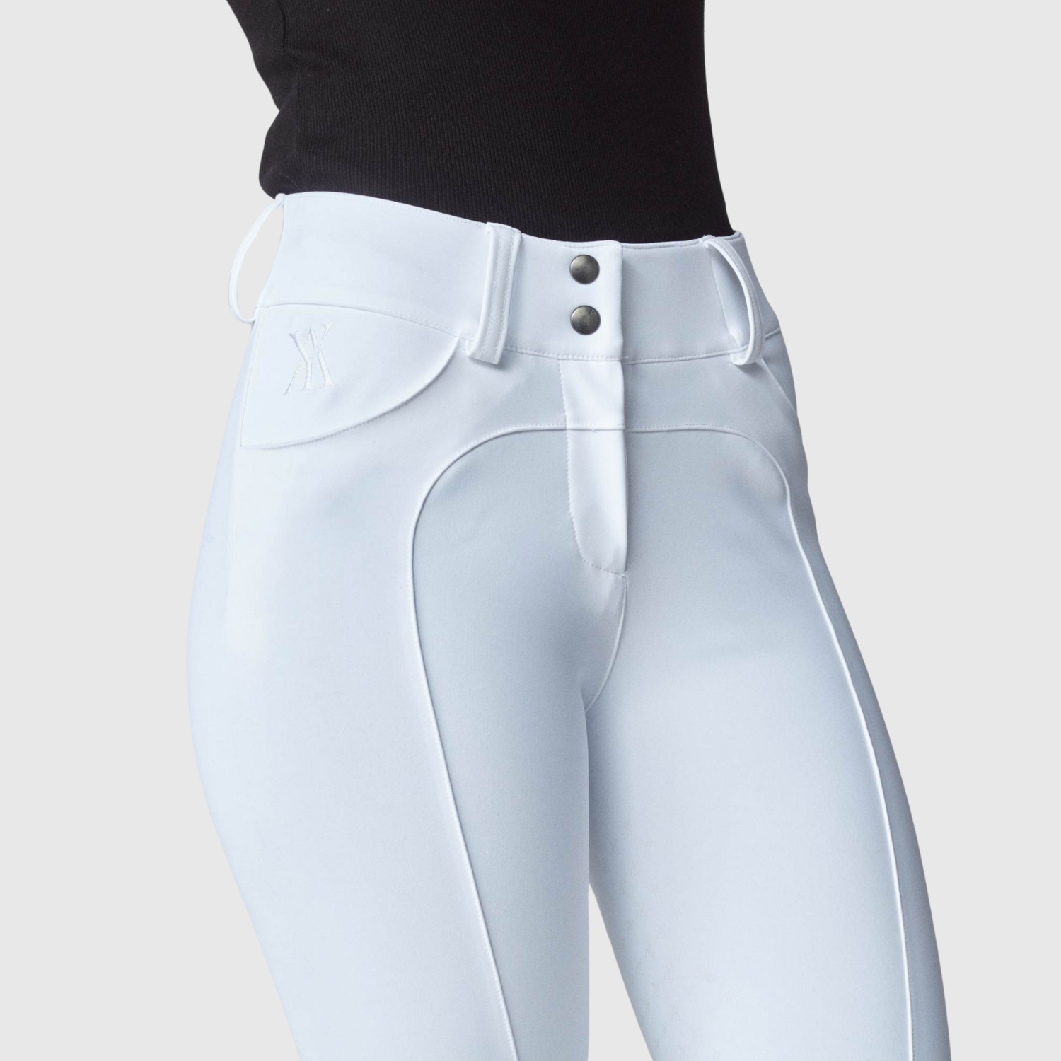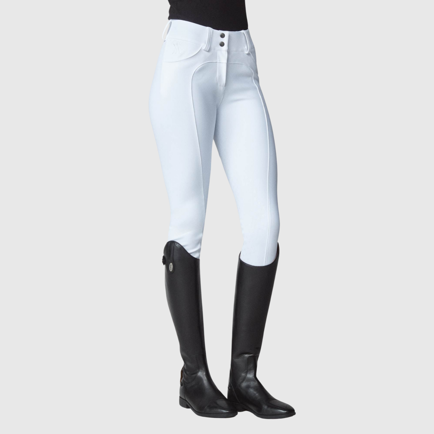 Compression riding breeches for all disciplines. Sculpting, is lightweight and provides optimal movement completed with a zipper and belt loops for a classic look. Features two front pockets and minimal seams to reduce friction and keep you comfortable in the saddle. Crafted from an exclusive, lightweight yet durable Italian jersey fiber and sewn in Portugal, Europe.