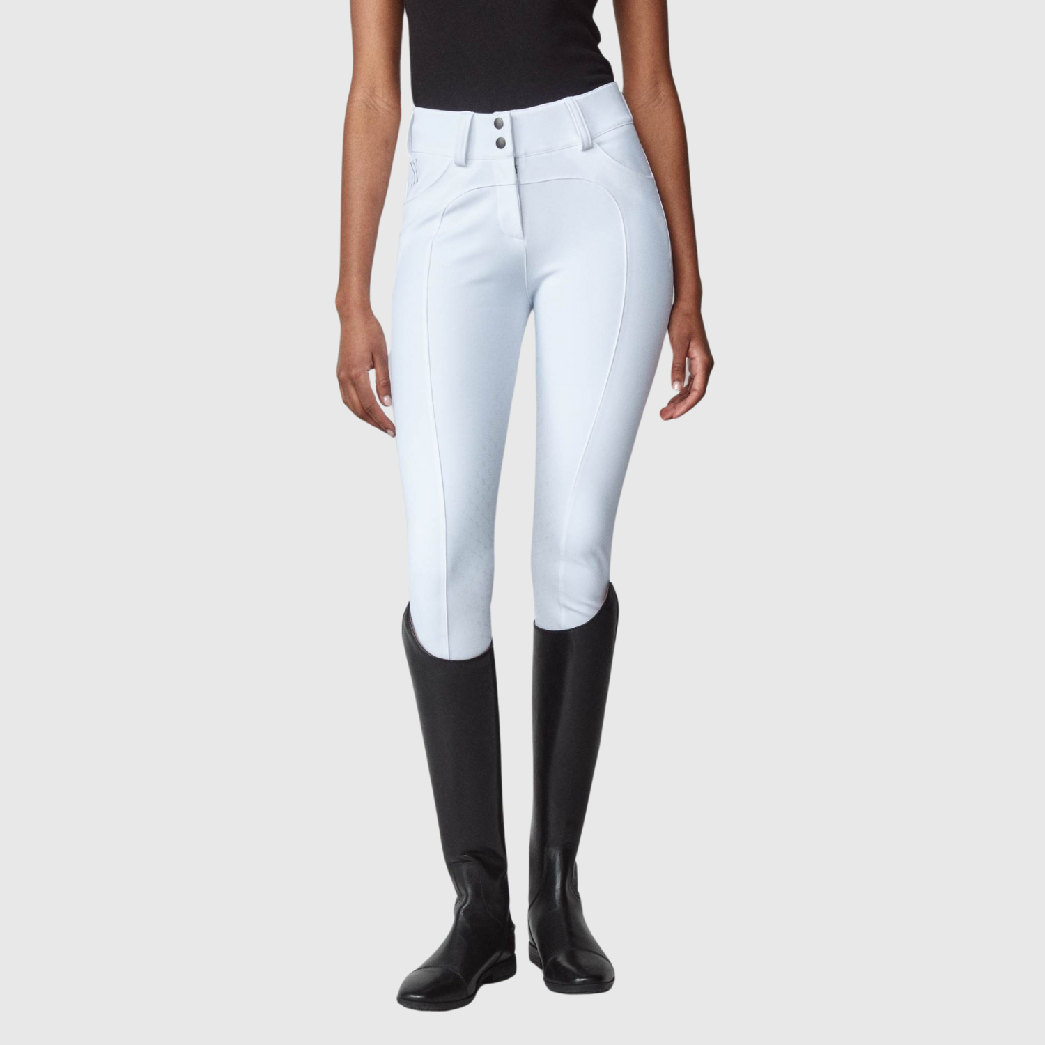 Compression riding breeches for all disciplines. Sculpting, is lightweight and provides optimal movement completed with a zipper and belt loops for a classic look. Features two front pockets and minimal seams to reduce friction and keep you comfortable in the saddle. Crafted from an exclusive, lightweight yet durable Italian jersey fiber and sewn in Portugal, Europe.