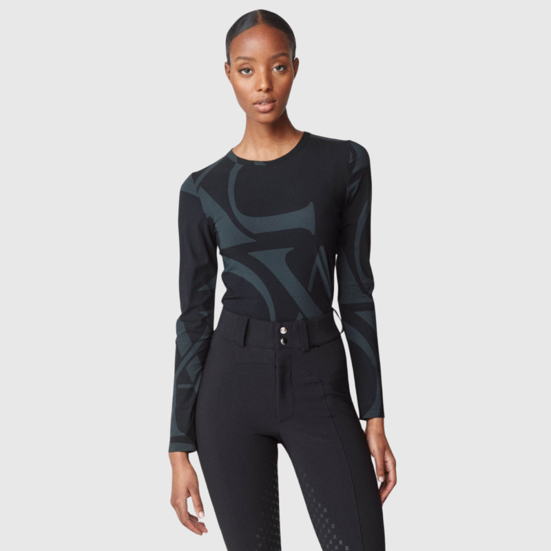 Yagya Ladies Monogram Long Sleeve Shirt, Black